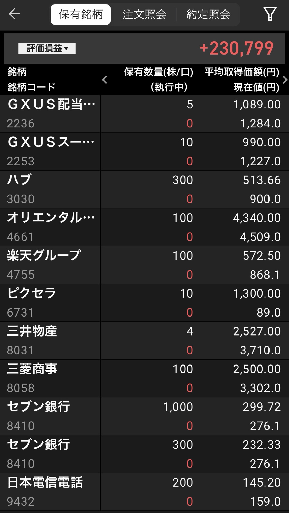 現在評価額:851,223円(+211,523円)
